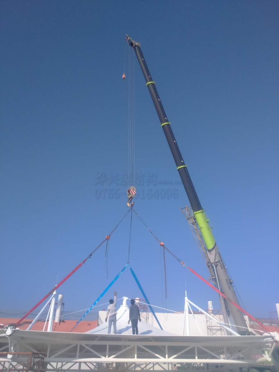 以上是對“廣州機電學校膜結構看臺吊裝作業”介紹。在這里燁興膜結構公司小編提醒您,如果您對學校膜結構運動場看臺還有疑問或者有興趣的話,請點擊聯系我們網頁右側的在線客服,或致電:400-9967-995,燁興膜結構——從心開始為您服務的貼心小顧問。