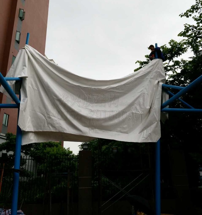 燁興提示:由于長期的經驗積累、技術沉淀,近年來,深圳燁興膜結構發展重點逐漸向高品質的ETFE膜結構和大型化的膜結構體育館轉移,很多老客戶都以為我們眼光高、不做小項目了,這是一個誤解。我們燁興膜結構一直在做各種優質膜結構項目,剛剛就交付了南航明珠小區膜結構雨棚。