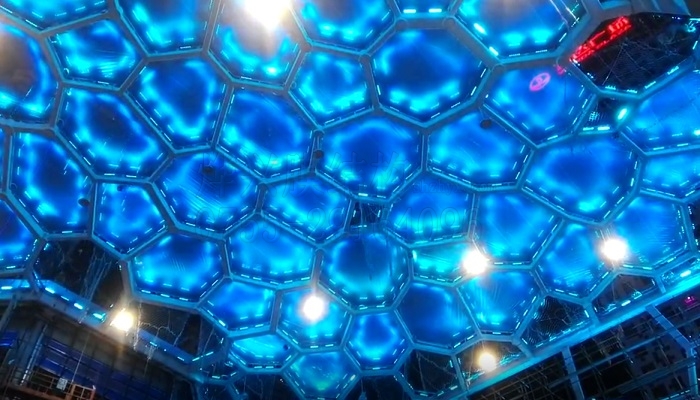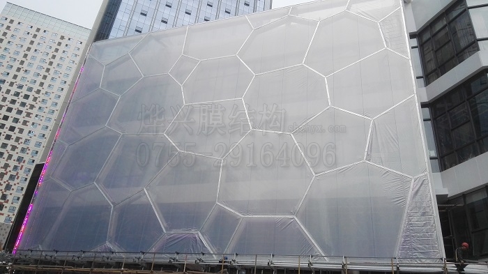 看到兩個(gè)出口處的膜結(jié)構(gòu)立面,有沒有讓你想起什么?是不是和2008年北京奧運(yùn)會(huì)的“水立方”國家游泳館的墻面結(jié)構(gòu)有點(diǎn)相像?這就是ETFE氣枕膜的外形效果,高端大氣上檔次。