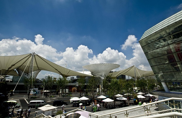 “世博軸索膜結(jié)構(gòu)是迄今為止世界規(guī)模最大的連續(xù)張拉索膜結(jié)構(gòu)。”上海世博會(huì)工程建設(shè)指揮部辦公室的市政項(xiàng)目部總經(jīng)理趙克平介紹說。“膜材選用了一種名為PTFE(聚四氟乙烯)的圖層玻璃纖維,具有不易燃性、防紫外線、抗風(fēng)化、自潔性、高反射性等特點(diǎn)。”世博軸總面積約77224平方米的PTFE膜結(jié)構(gòu),既是一道與眾不同的風(fēng)景線,也發(fā)揮了巨大的實(shí)用價(jià)值,為7000多萬參觀世博園的游客遮陽擋雨、駐足納涼。