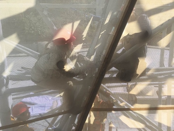 現場工人正在對安裝的膜材進行細節處理