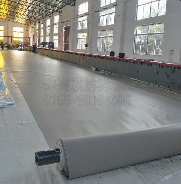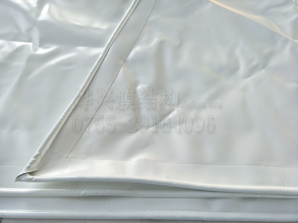2、同一膜結構工程宜使用同一企業、同一批號的膜材。每批膜材均應具有產品質量保證書和檢查報告,并應進行進貨抽檢。膜材表面應無針孔,無明顯褶皺和明顯污漬,不應出現斷絲、裂縫和破損現象,色澤應無明顯差異。
