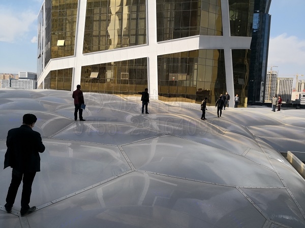 專家團(tuán)正在對(duì)燁興-西寧唐道ETFE膜結(jié)構(gòu)工程進(jìn)行驗(yàn)收