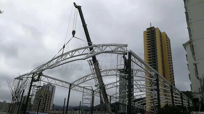 燁興-桐梓一中籃球場風(fēng)雨棚膜結(jié)構(gòu)項(xiàng)目已經(jīng)動(dòng)工一個(gè)多月,現(xiàn)在工程進(jìn)展到哪一步了?關(guān)注燁興膜結(jié)構(gòu),帶您領(lǐng)略膜結(jié)構(gòu)施工的最高水準(zhǔn)。今天小編會(huì)將現(xiàn)場的最新施工進(jìn)展給大家介紹一下,讓您對項(xiàng)目進(jìn)展有個(gè)清晰的了解。