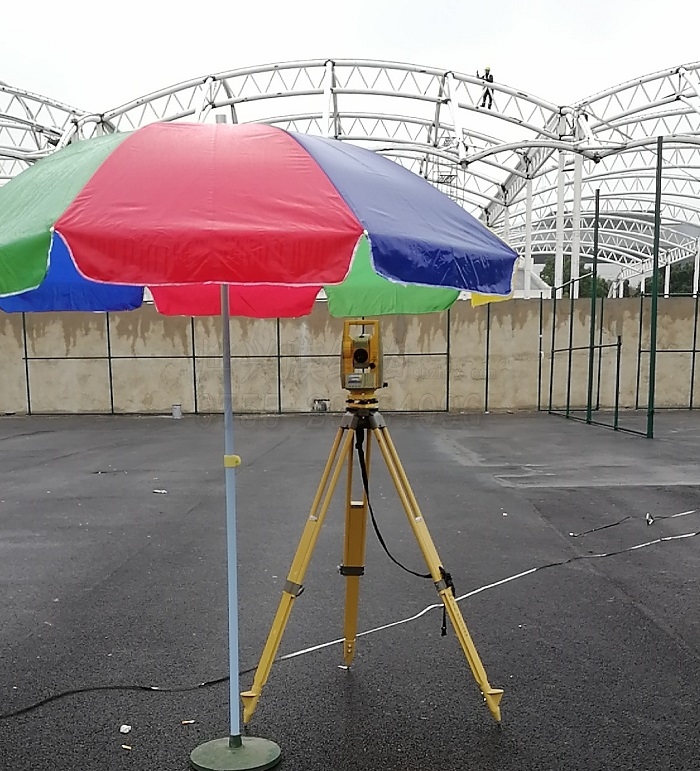 燁興-廣西大學網球場鋼膜結構工程正式施工已經一個多月(中間因廣西大學90周年校慶停工12天),目前主體鋼結構已基本完工,現場正在進行鋼構施工的收尾:如對施工過程中損壞的漆皮進行修補;排水系統的制作處理;還有就是現場清理準備工作,為正式裝膜創造良好的施工條件。我們預計的工期是,在春節前完成大部分膜材的張拉安裝,在學校春季開學前竣工交付。